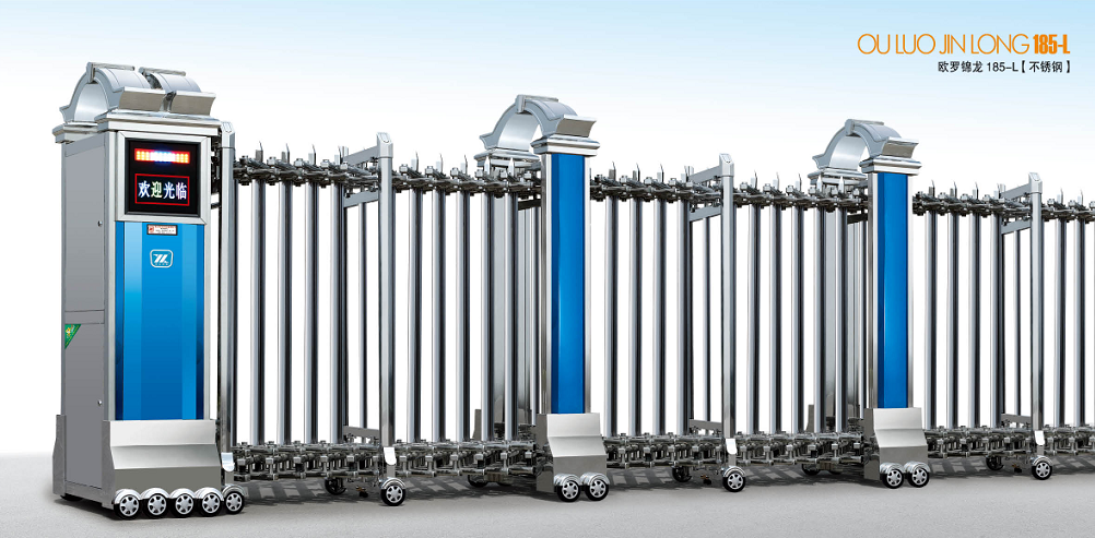2、 電動伸縮門可以選用電子軟啟動與機械緩沖裝置配合使用,啟閉時主機不搖晃且運行順暢,普通電動門在啟閉時易晃動,運行繼續且發出磨擦噪音,導致交接管折斷。
